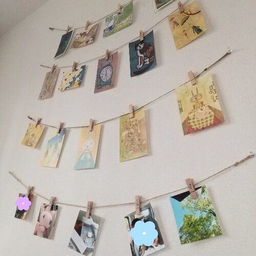 こんにちわ! 水彩モガです。 前回記事に引き続き、 今日も100均雑貨を使ったインテリアアイデアです! じゃーん! ついつい集めてしまうポストカードを せっかくなら可愛く飾りたい! ということで、 100均の麻の紐&木製クリップを使って、お気に入りの写真…